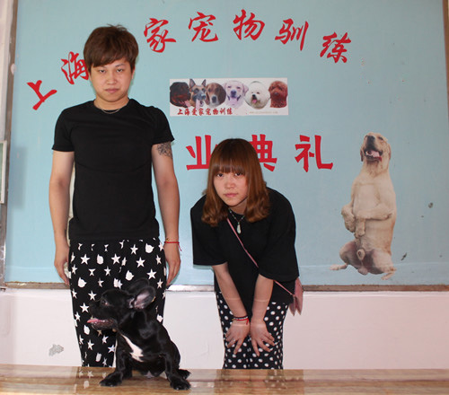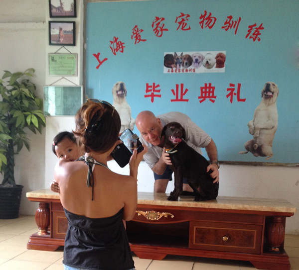 外国家长训练爱犬毕业照爱上海后花园外国家长训练爱犬毕业照